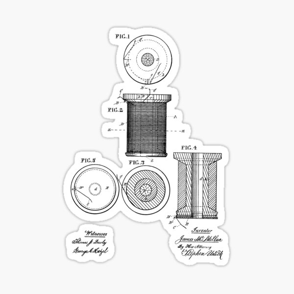 "Thread-Spool Vintage Patent Hand Drawing" Sticker by TheYoungDesigns ...