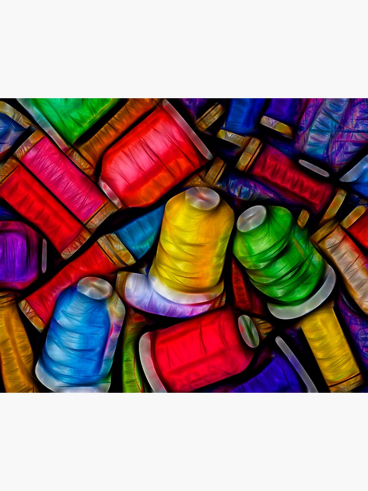 "Colorful spools of thread pins needles sewing 2" Sticker for Sale by ...