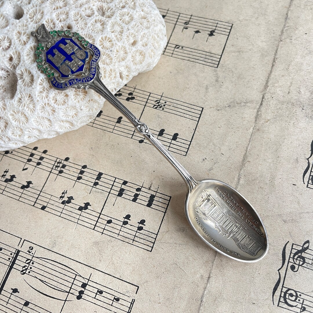 Rare Antique Solid Silver Enamel Spoon. Bank of Ireland Crested Spoon ...