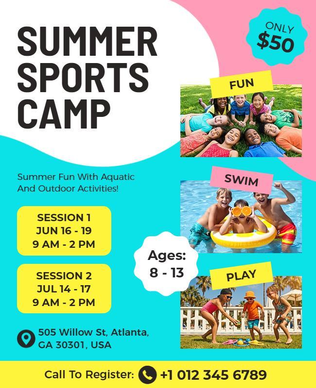 Vibrant Summer Sports Camp Kids Activities Poster Template
