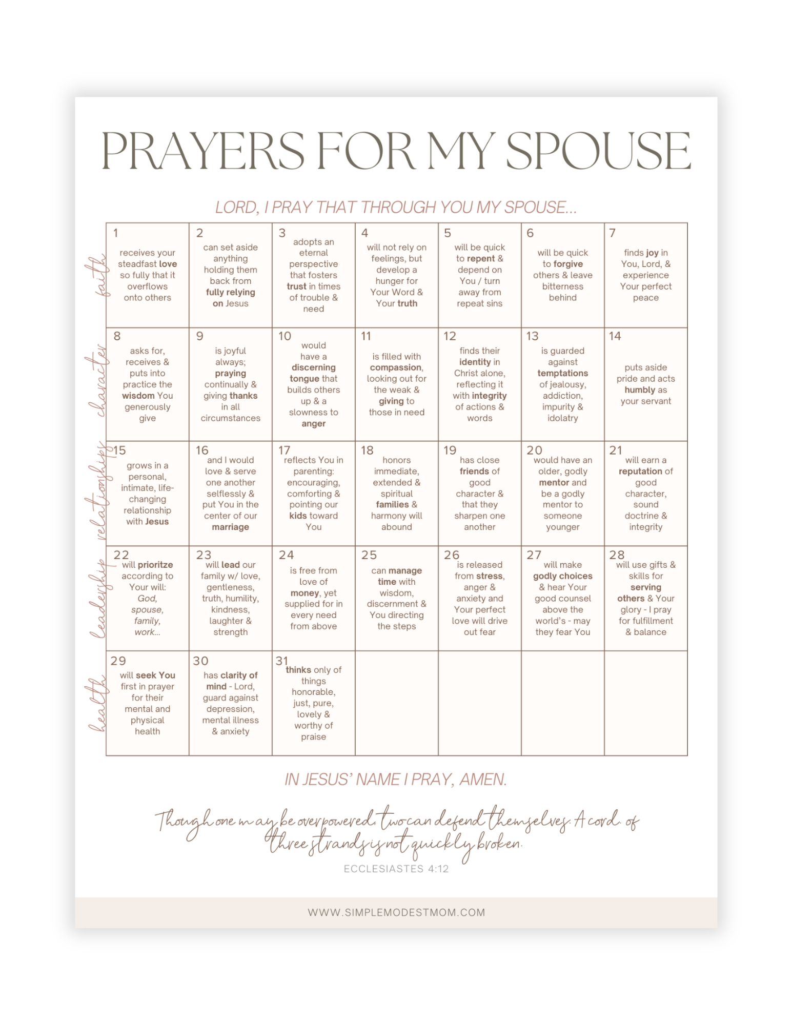 A Month of Daily Prayers for Your Spouse | Simple Modest Mom