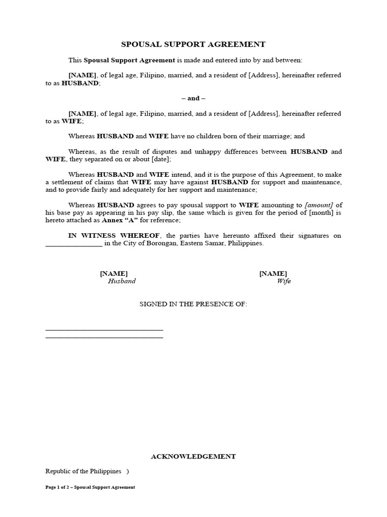 Sample Spousal Support Agreement | PDF | Social Institutions | Private Law
