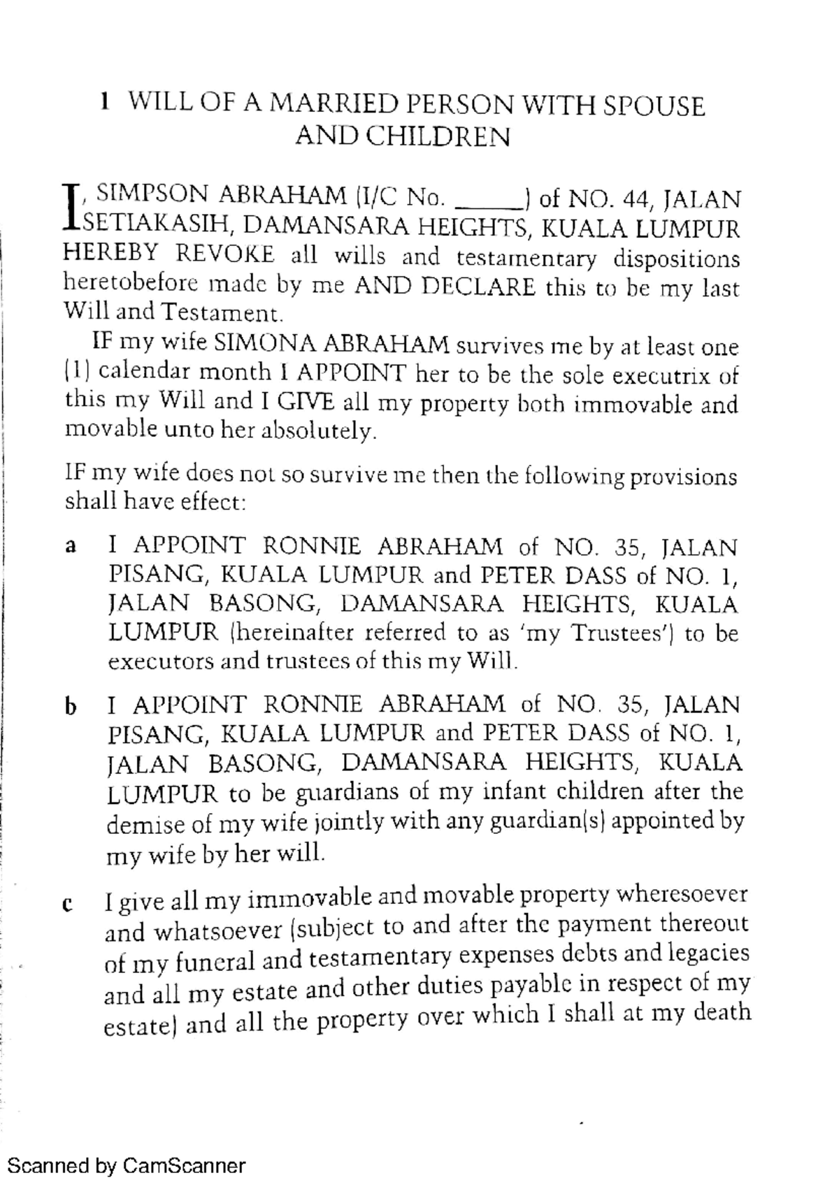 Sample Will for Married Person with Spouse & Children - Studocu