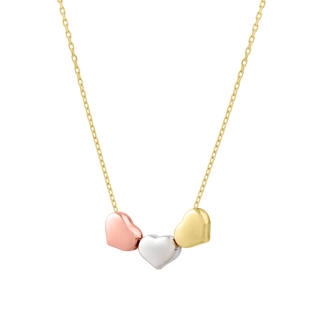 14k Gold Tri-color Triple Love Heart Necklace With Spring-ring Clasp 18 ...