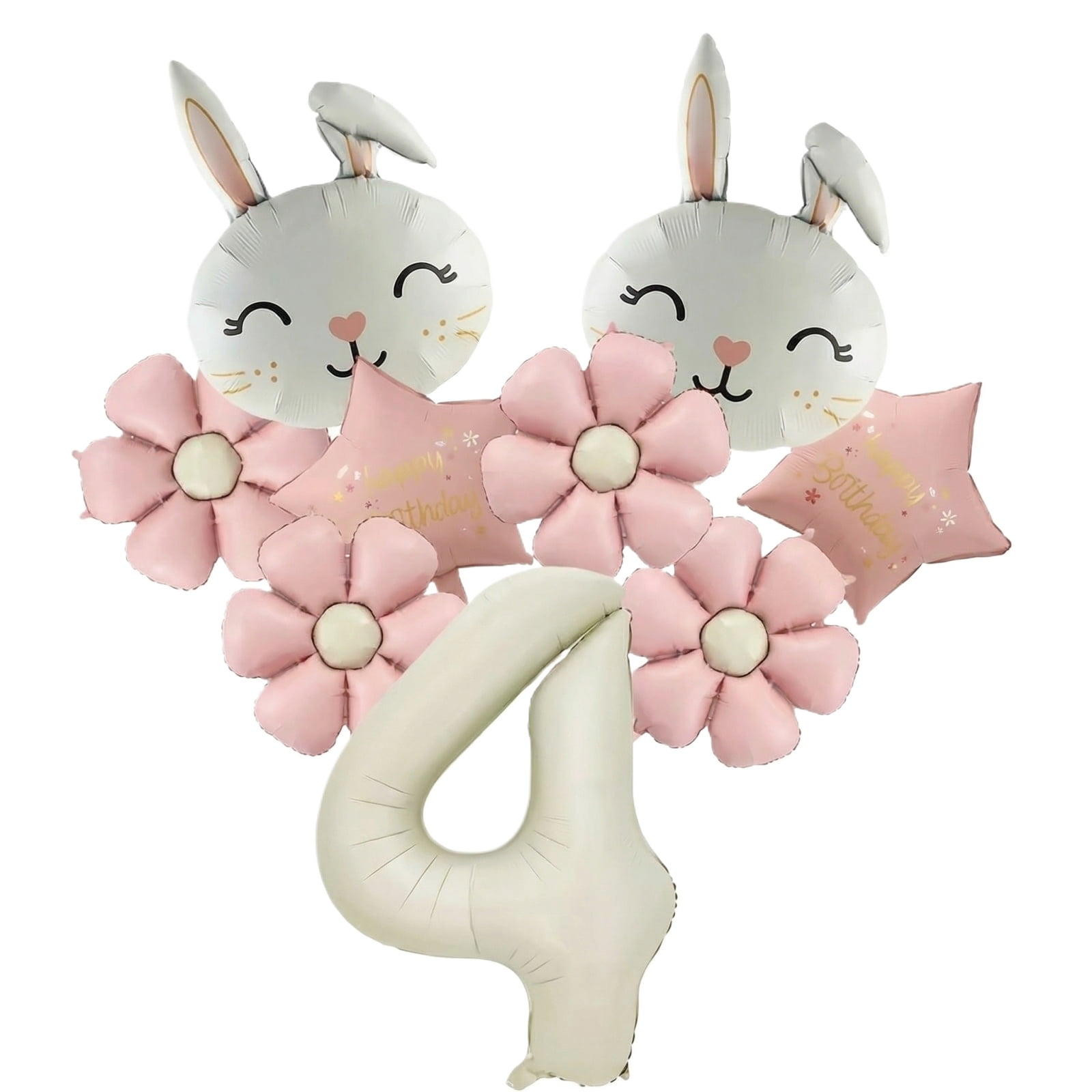 Birthday Number Balloons, Pink Flower Party Decorations, Cream 4 Foil ...