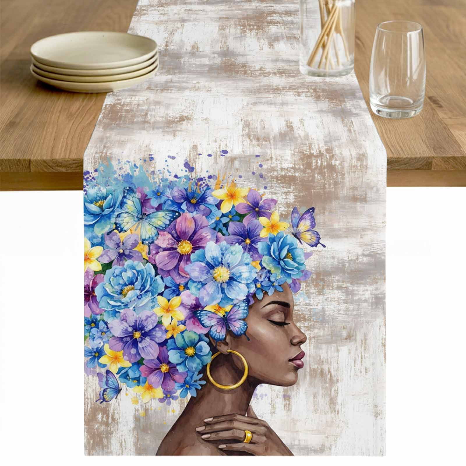 Black African Women Table Runner - 72 Inch Long Spring Floral Butterfly ...