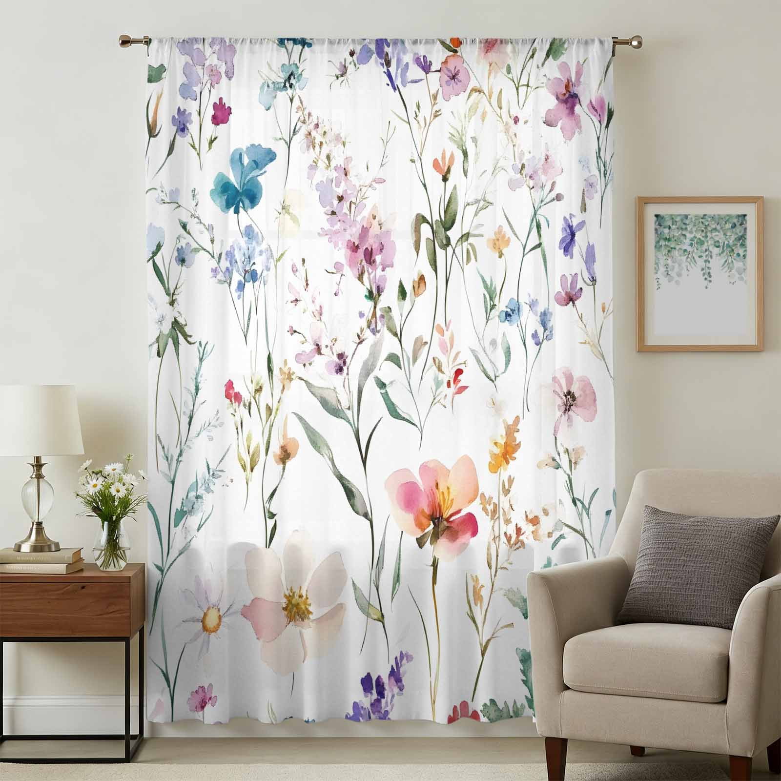 Botanical Flower Sheer Curtains 108 Inches Extra Long, Watercolor ...