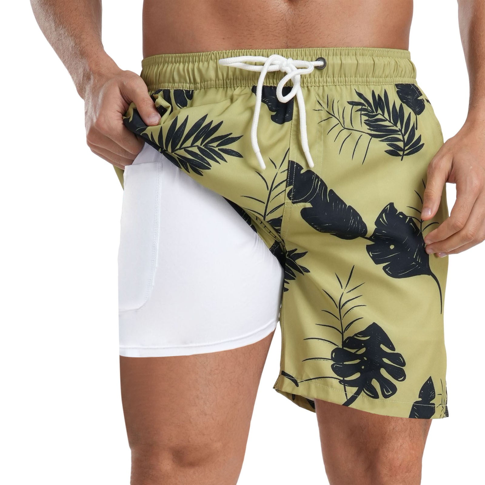 CHENge Men's Swim Trunks 9 Inch Retro Athletic Tropical Print Quick-Dry ...