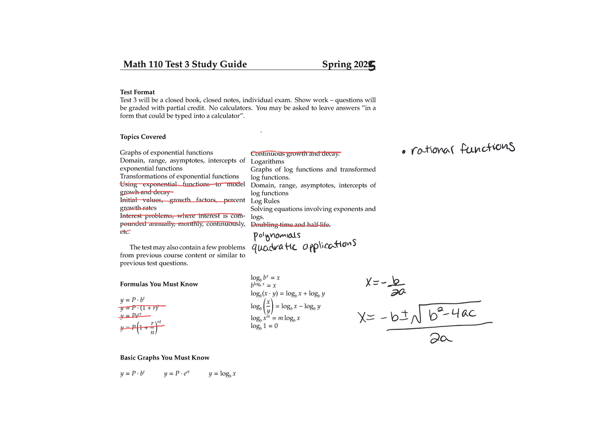 MATH 110 Test 3 Study Guide Spring 2025: Key Topics & Format - Studocu