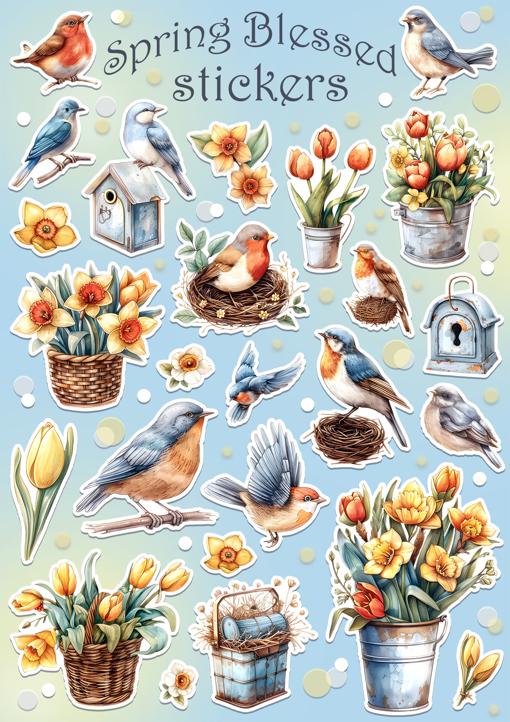 set of 25 Spring pre made stickers with white edge, good for planners ...