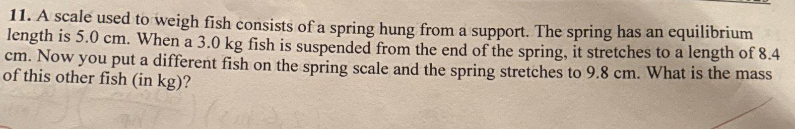 Solved 32. A spring balance used to weigh fish stretches | Chegg.com