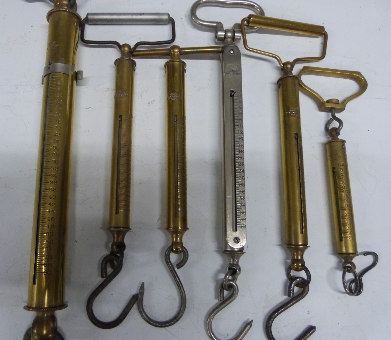 Six Salter fish weighing spring balances, comprising 60, four 40 and ...