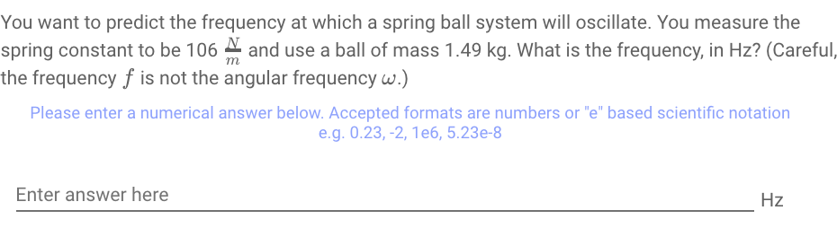 Solved You want to predict the frequency at which a spring | Chegg.com