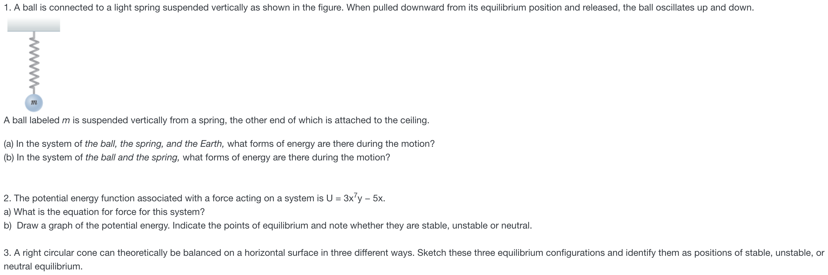 Solved 1. A ball is connected to a light spring suspended | Chegg.com