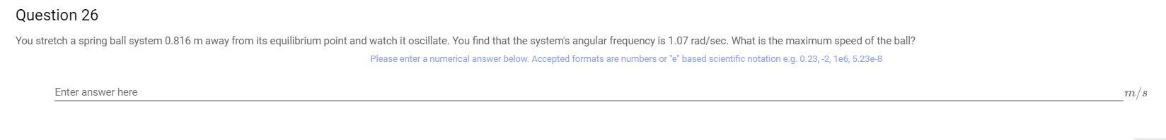 Solved Question 26 You stretch a spring ball system 0.816 m | Chegg.com