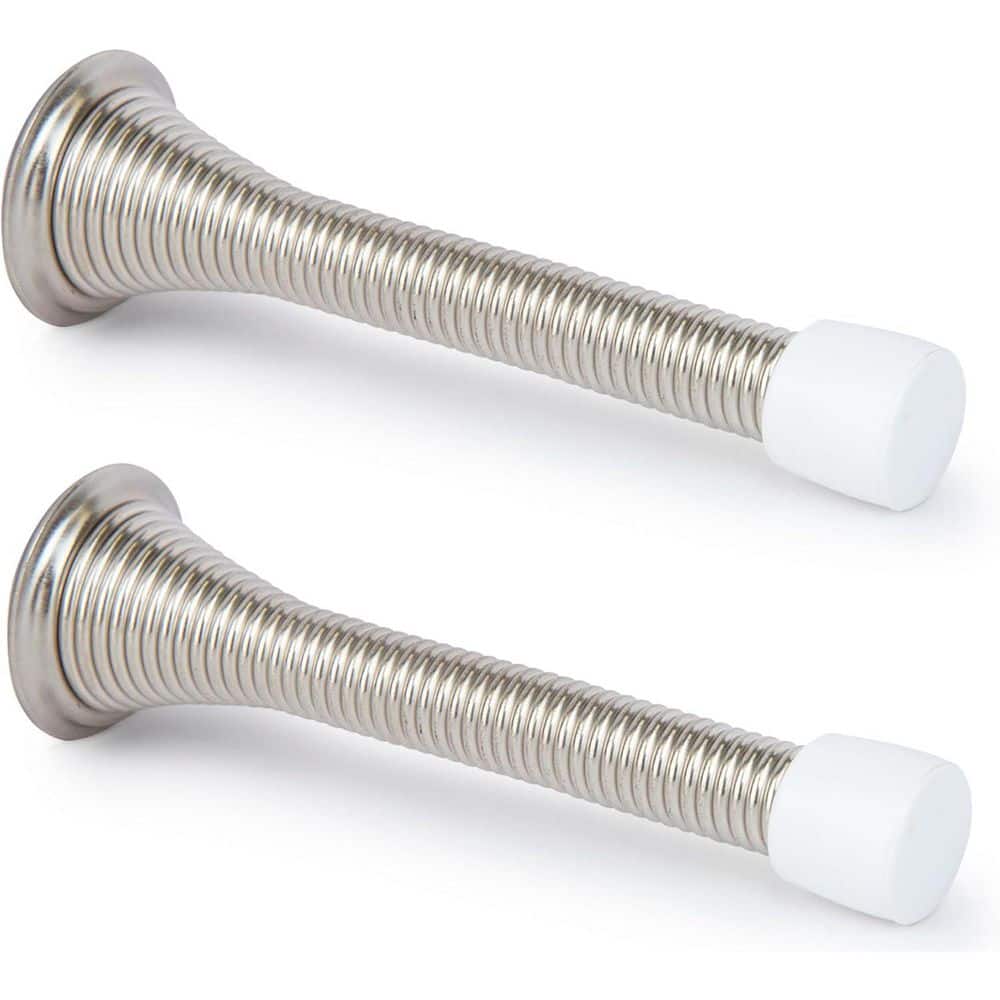 2 Pack Spring Door Stoppers Brushed Satin Nickel - Upgraded Flexible ...