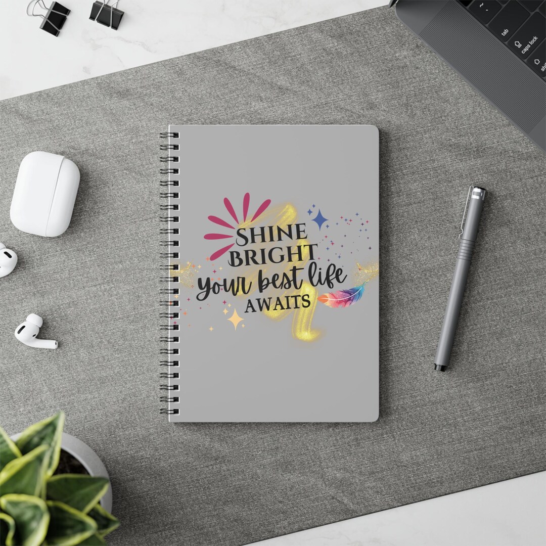 Shine Bright Notebook, Motivational Journal, Feather Design Diary, A5 ...