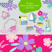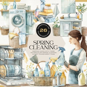 Spring Clean Clipart, Watercolor Housekeeping Clip Art, Cleaning ...