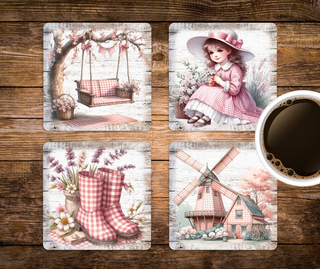 Pink Gingham Spring Square Coaster Sublimation Design, 4x4 Spring ...