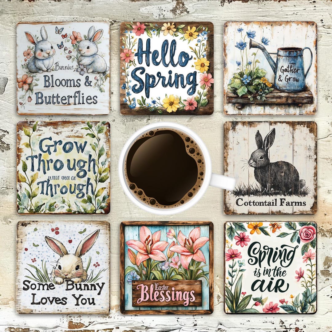 Amazon.com: Whaline Spring Coasters 6 Pack Rustic Farmhouse Drink ...