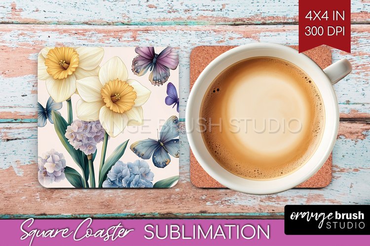 Spring Flowers Square Coaster Template, Floral (5398161)
