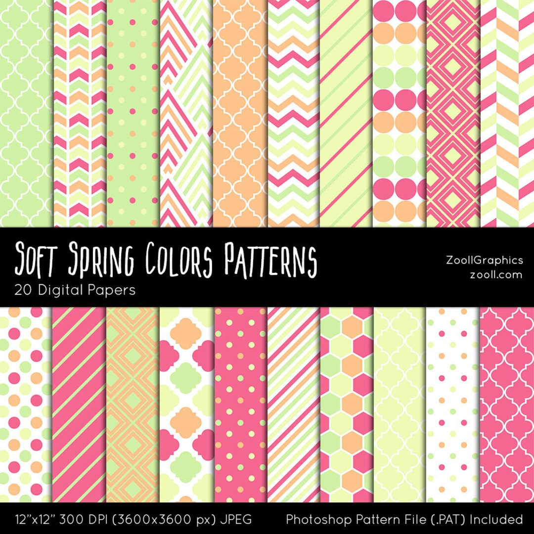 Soft Spring Colors Patterns, 20 Digital Papers 12x12, Photoshop Pattern ...