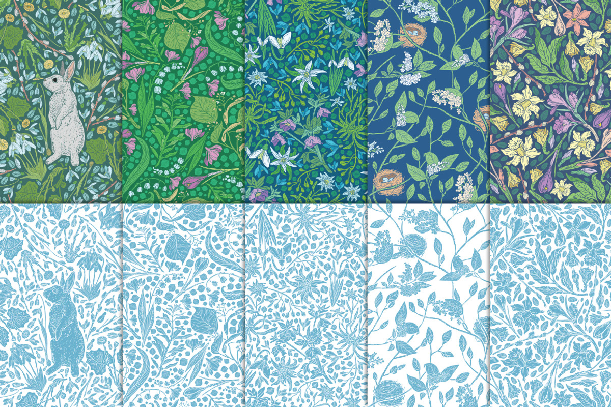 10 different spring patterns, Pattern Swatches, vector, Endless texture ...