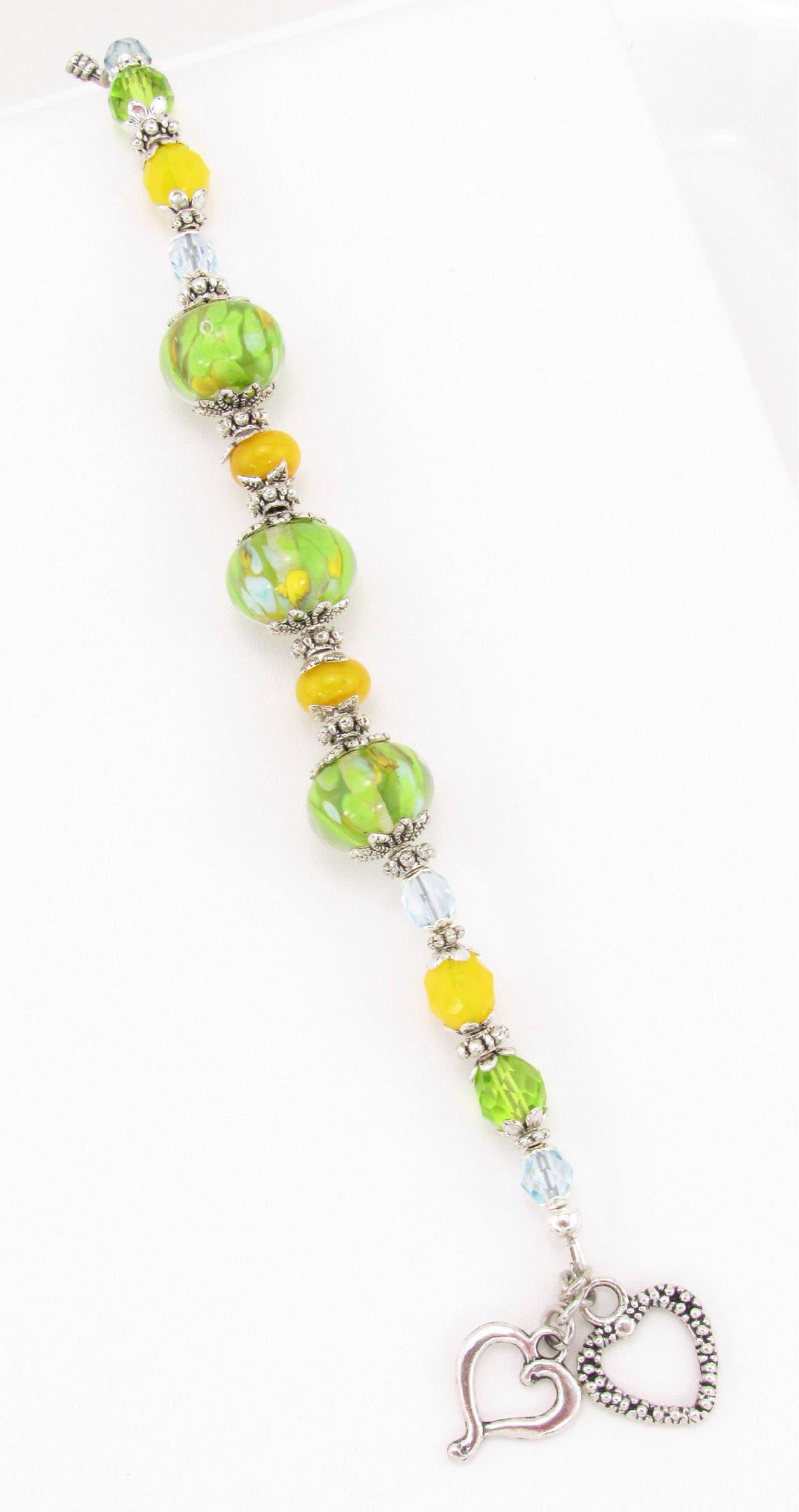 Spring Colors Beaded Bracelet, SRA Lampwork Beads, Green, Yellow and ...