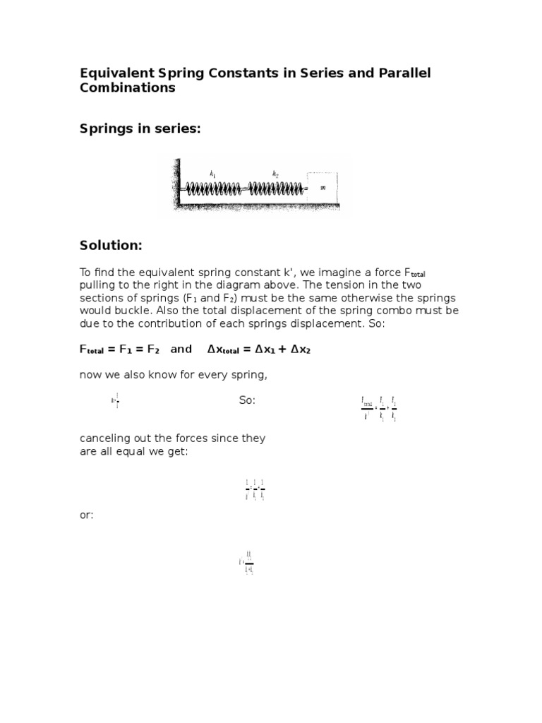 spring combination / Springs in Series and Parallel / SPRINGS IN SERIES ...