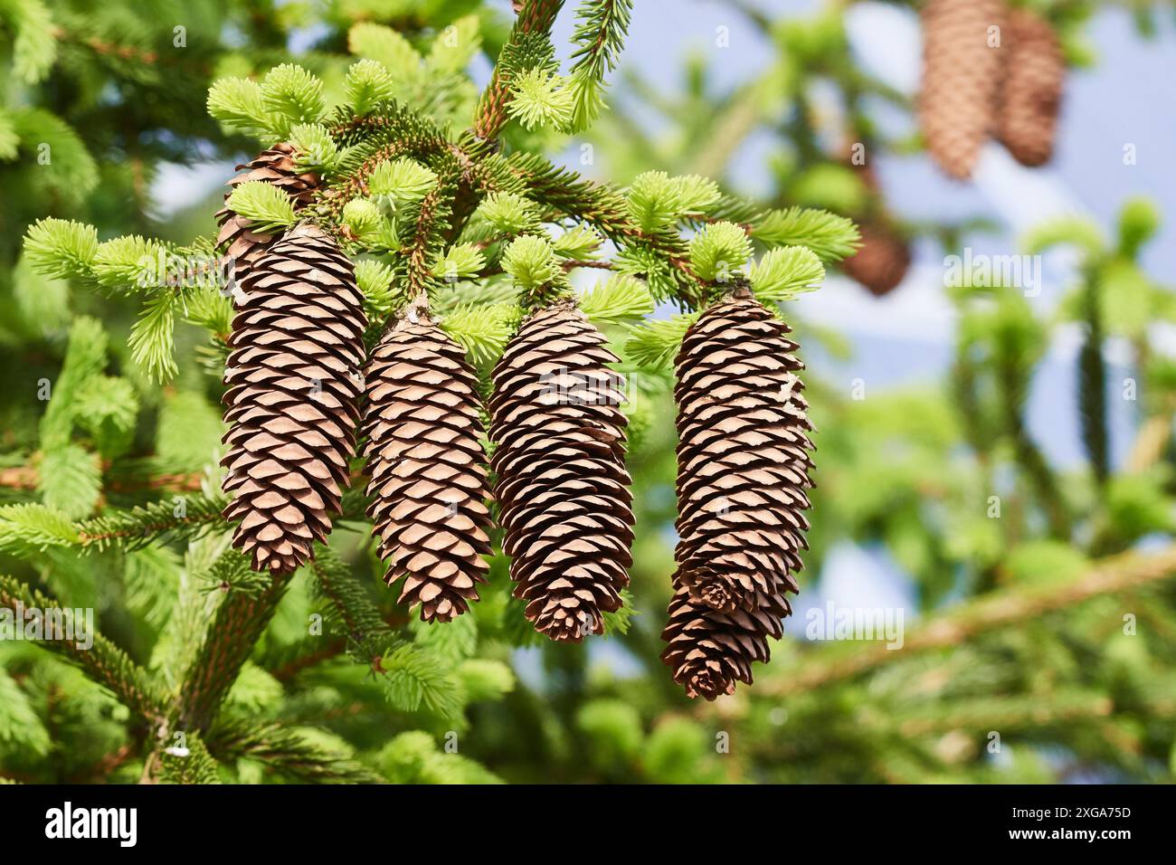 Spruce tree branch young cones hi-res stock photography and images - Alamy