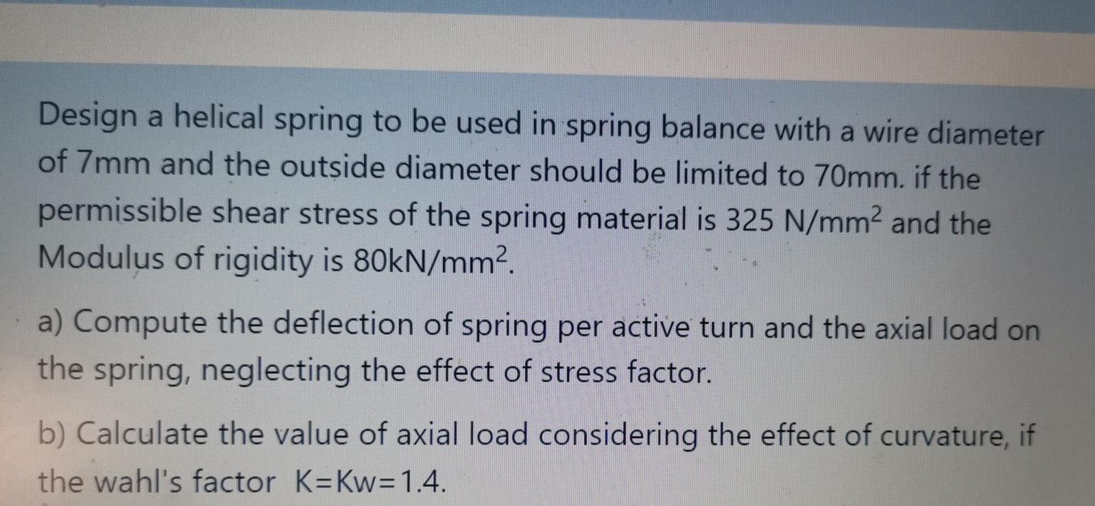 Solved Design a helical spring to be used in spring balance | Chegg.com