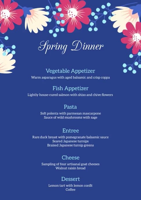 Spring Theme Dinner Specials Menu | Spring party menu, Party menu ideas ...
