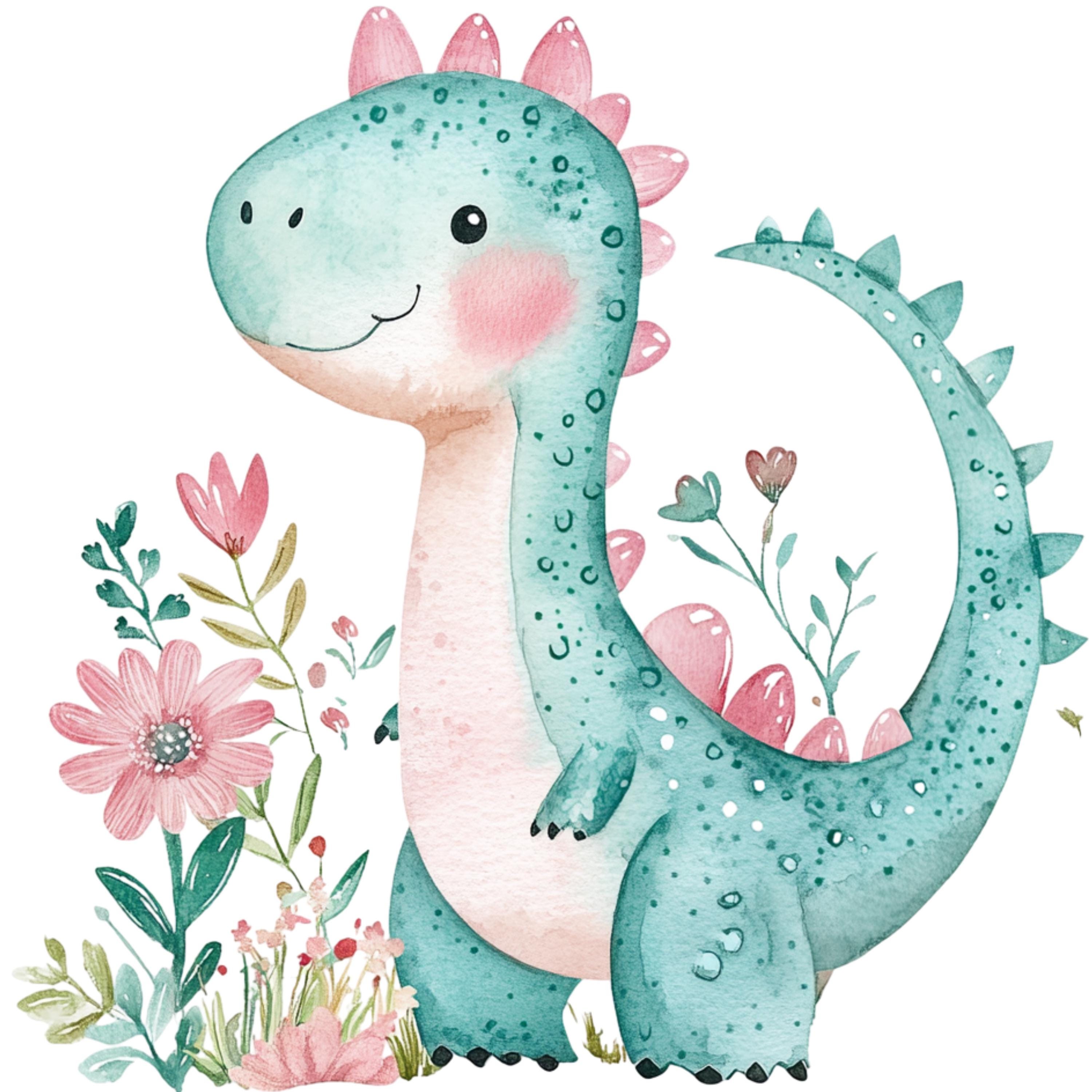 Cute Spring Dinosaur Watercolor Clipart, Dinosaur Clipart, 30 PNG ...