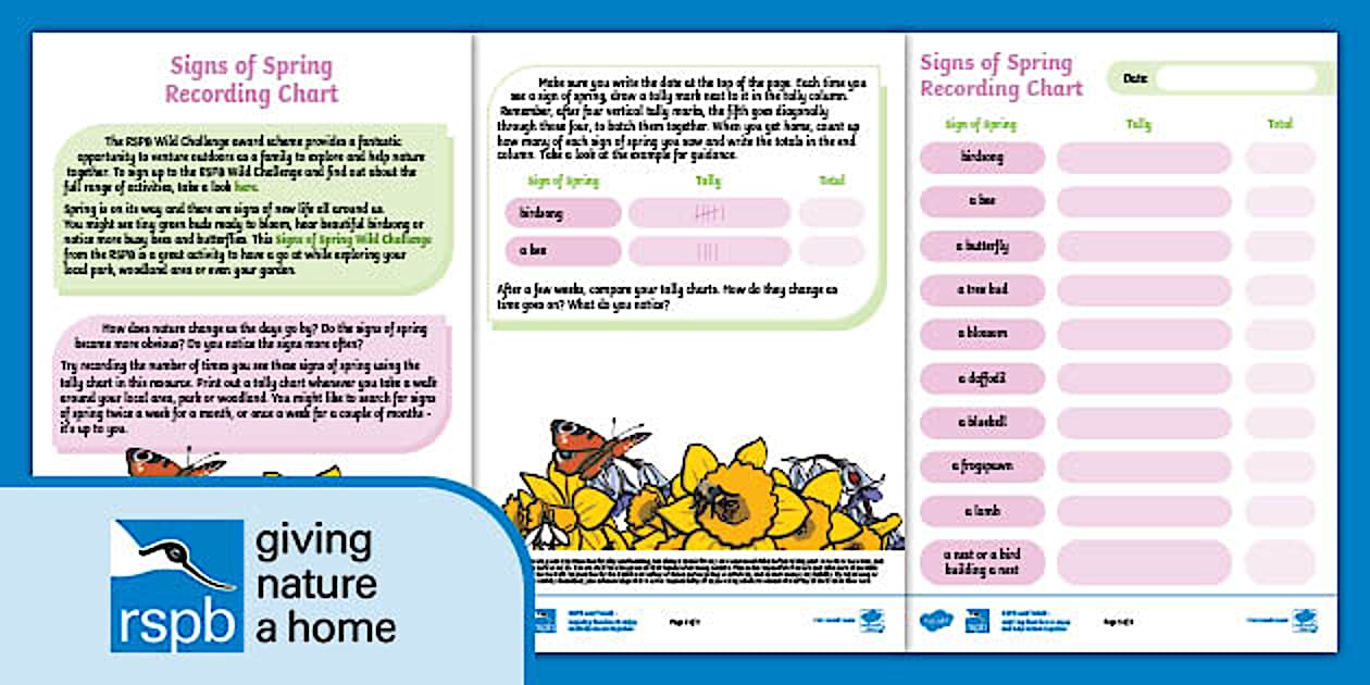 FREE! - Signs of Spring Recording Chart (Ages 5 - 7)