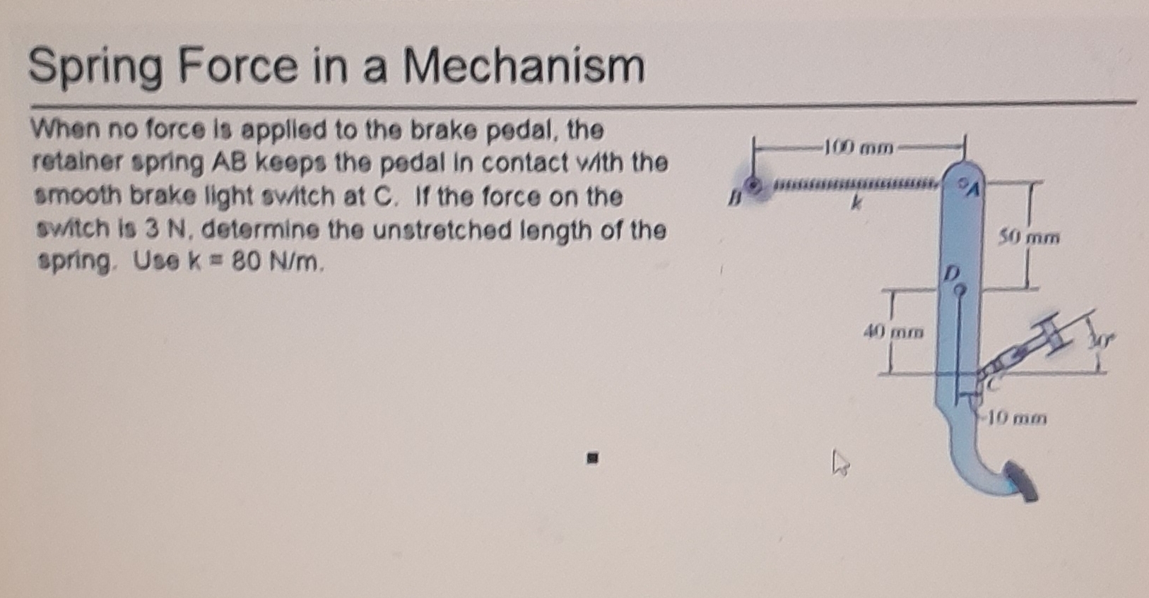 Solved Spring Force in a MechanismWhen no force is applied | Chegg.com