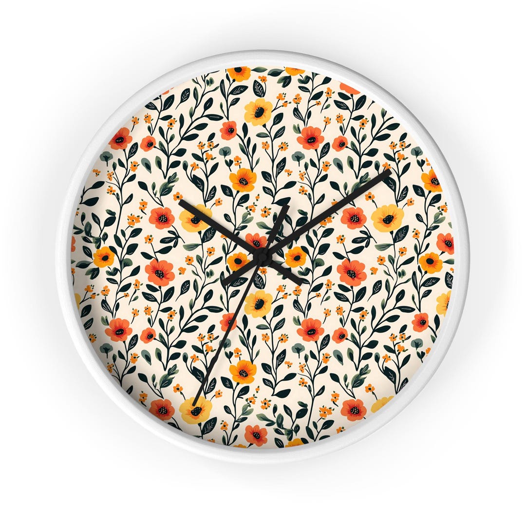 Spring Floral Wall Clock, Wildflower Wall Clock, Office Clock ...