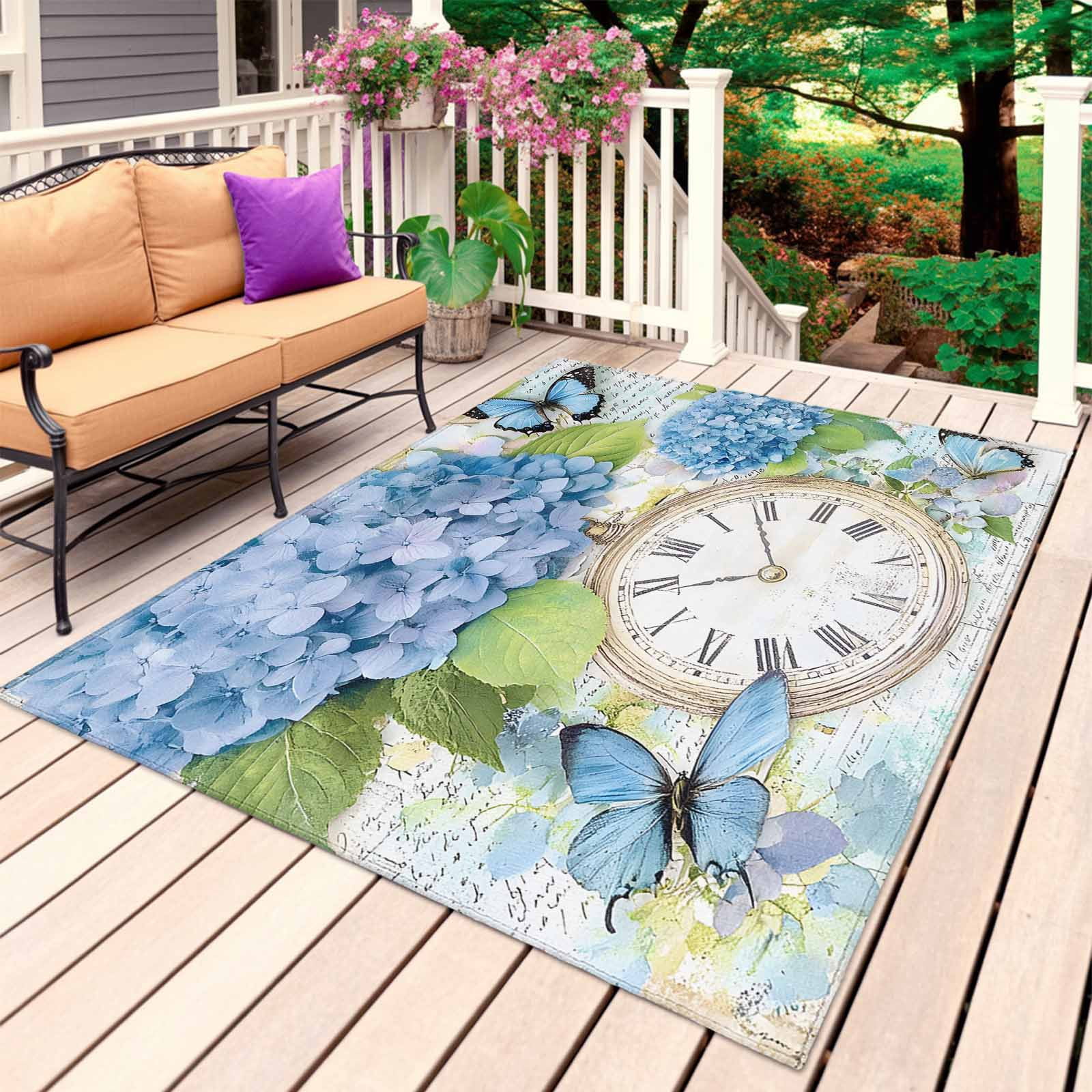 Blue Hydrangea Retro Outdoor Rug 5x7 Ft, Non Slip Washable Area Rug ...