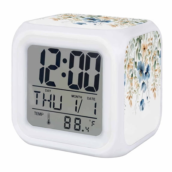 Blue Spring Floral Digital Alarm Clock for Bedrooms, Smart LED Alarm ...