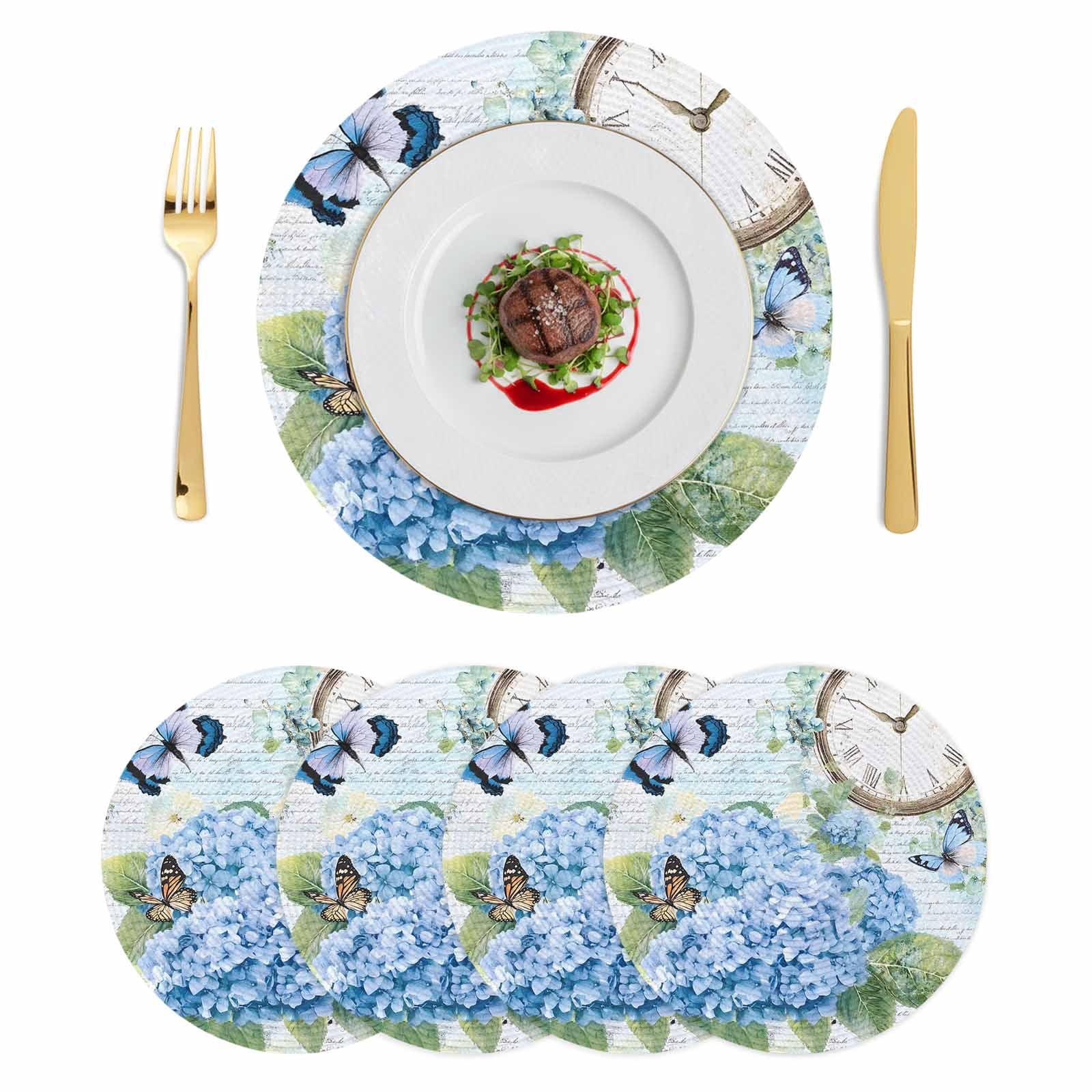 Blue Vintage Hydrangea Round 15 Inch Placemats Set of 4, Spring Rustic ...
