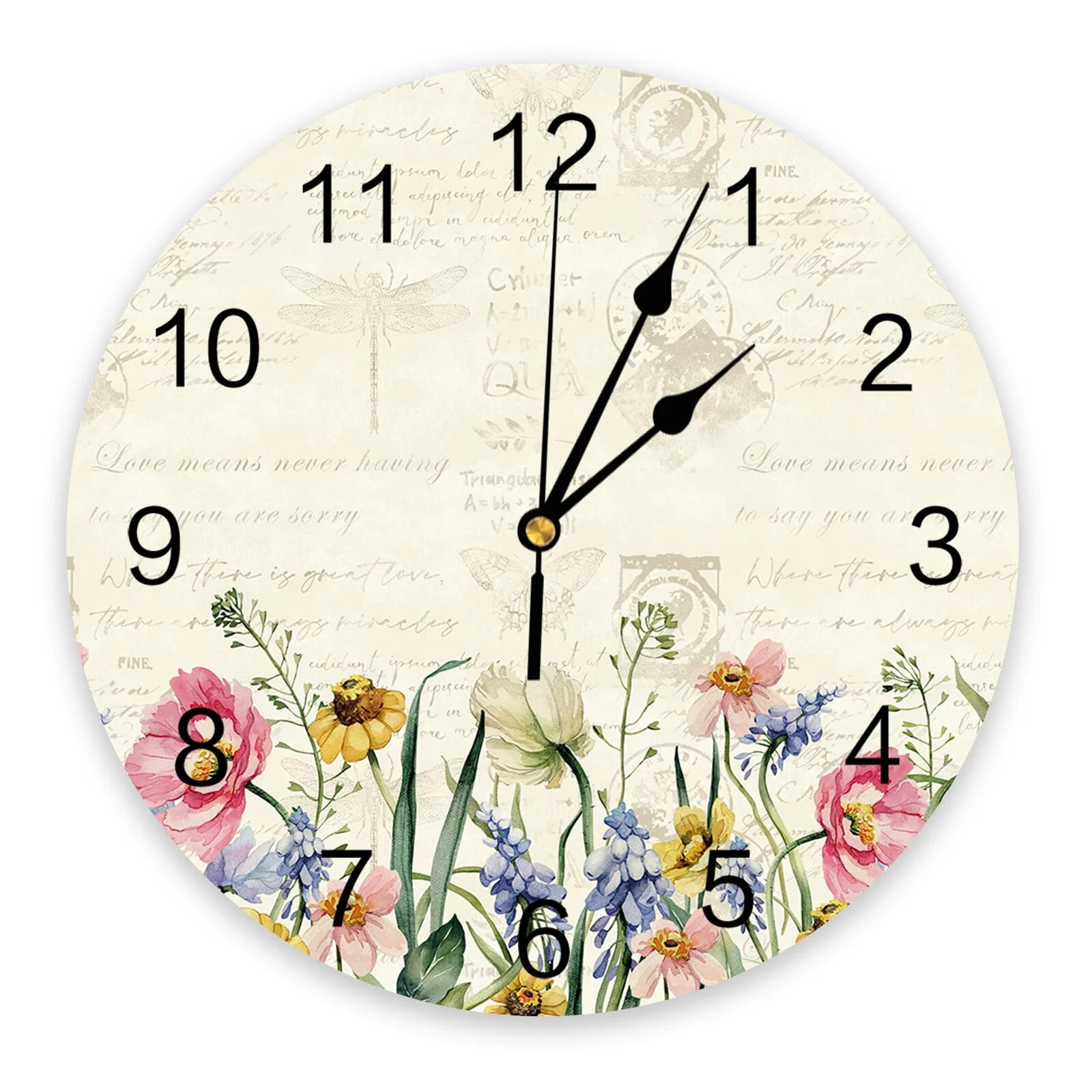 Wildflower Wall Clock, Spring Floral Wall Clock, 10 Watercolor Flower ...