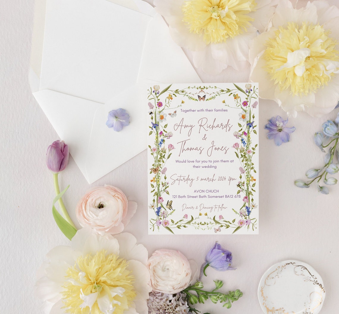 Spring Flower Editable Digital Wedding Invite, Printable Wildflower ...