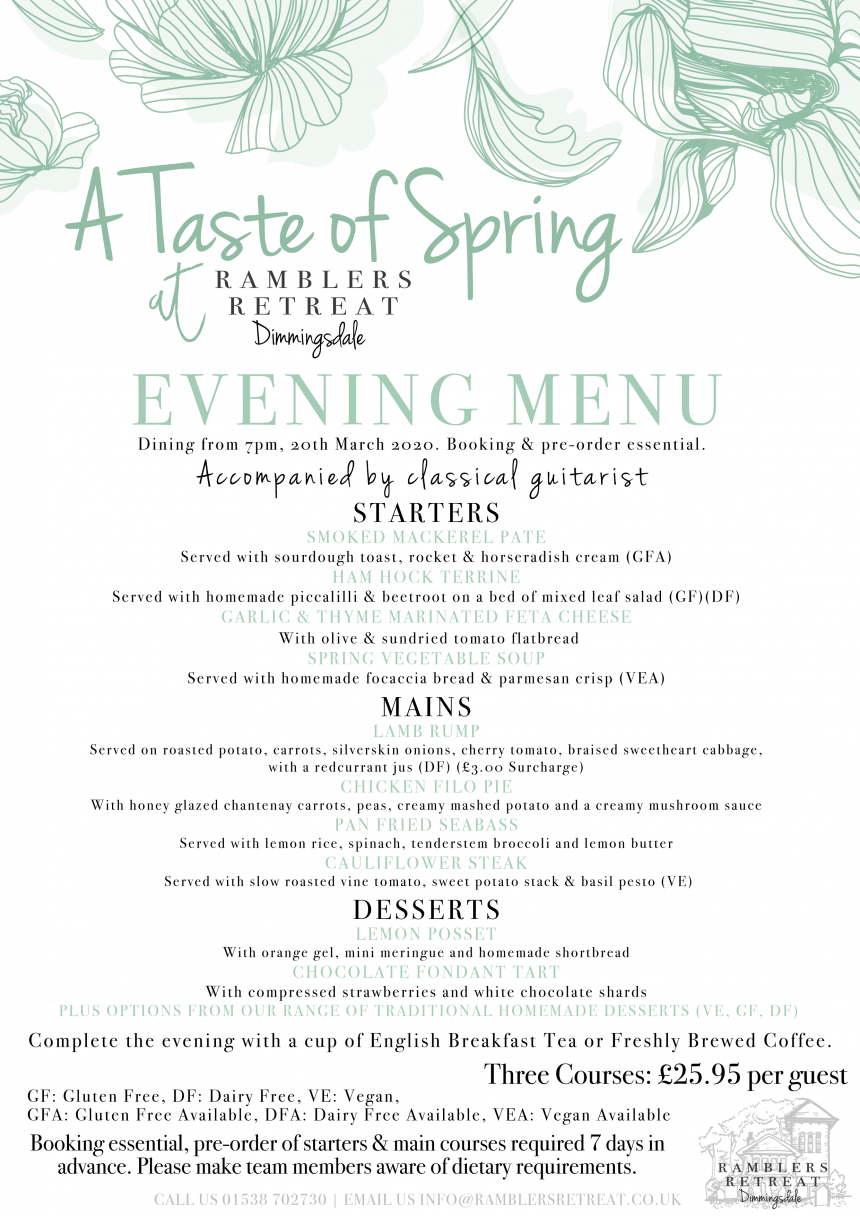 Taste of Spring Evening Meal - Ramblers Retreat Ramblers Retreat ...