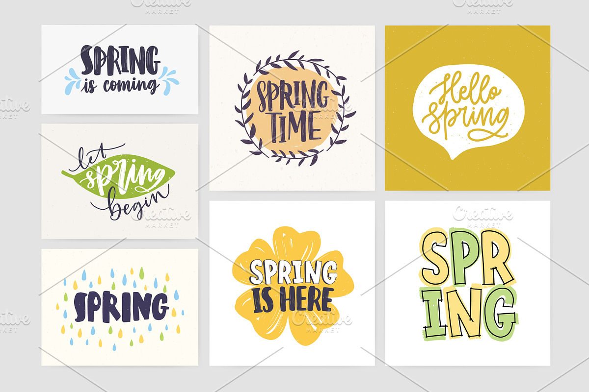 Free Vector | Lettering spring card collection