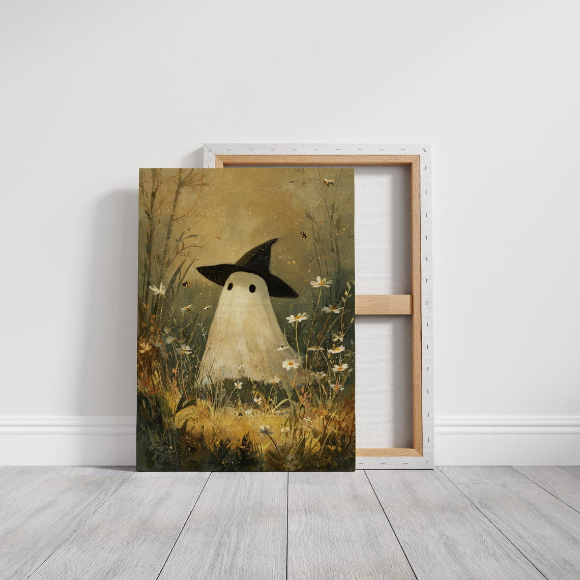 Velto Cute Ghost In Witch Hat Art – Floral Field Decor – Whimsical ...