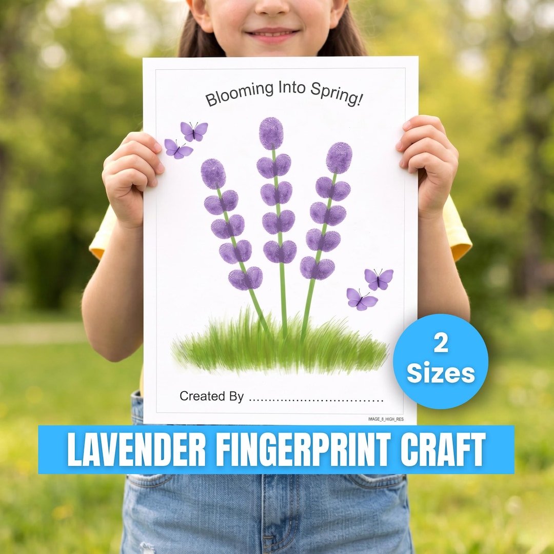 Lavender Fingerprint Craft for Kids, Spring Flower Art Printable ...