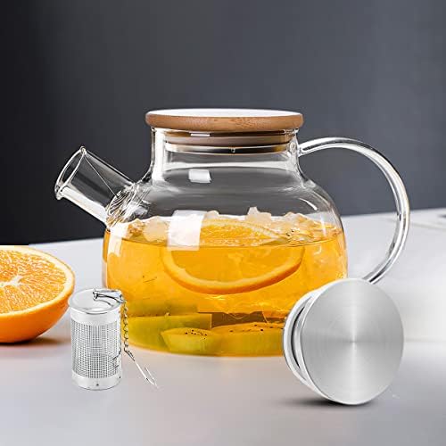 Spring Chef Clear Glass Tea Pot with Infuser 1200ml/40.58oz, Removable ...