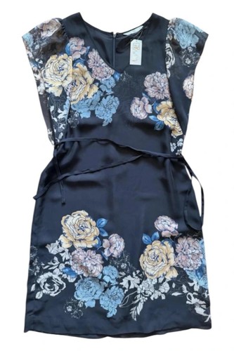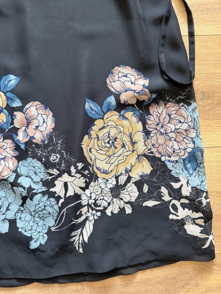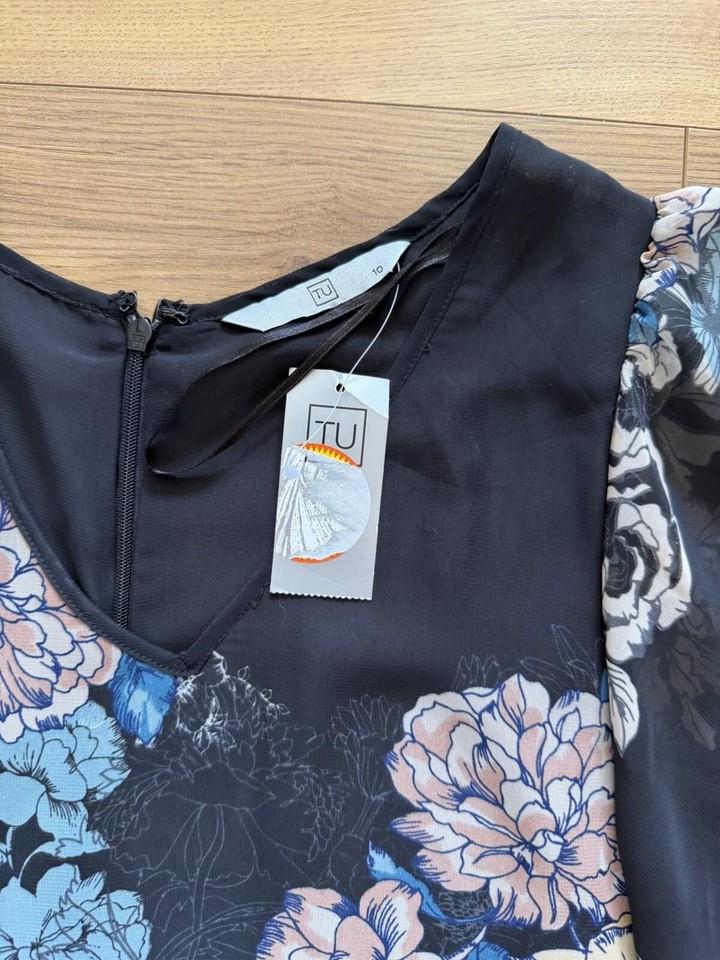 Tu Black Floral Spring/summer Dress Sheer Cape Sleeve Tie Waist Size 10 ...