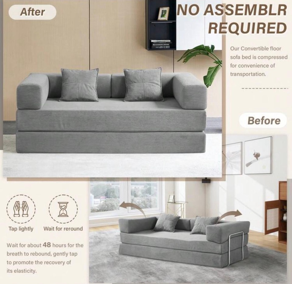 Foldable Sofa Bed, 4 in 1Convertible Sleeper Sofa, Spring Folding Floor ...