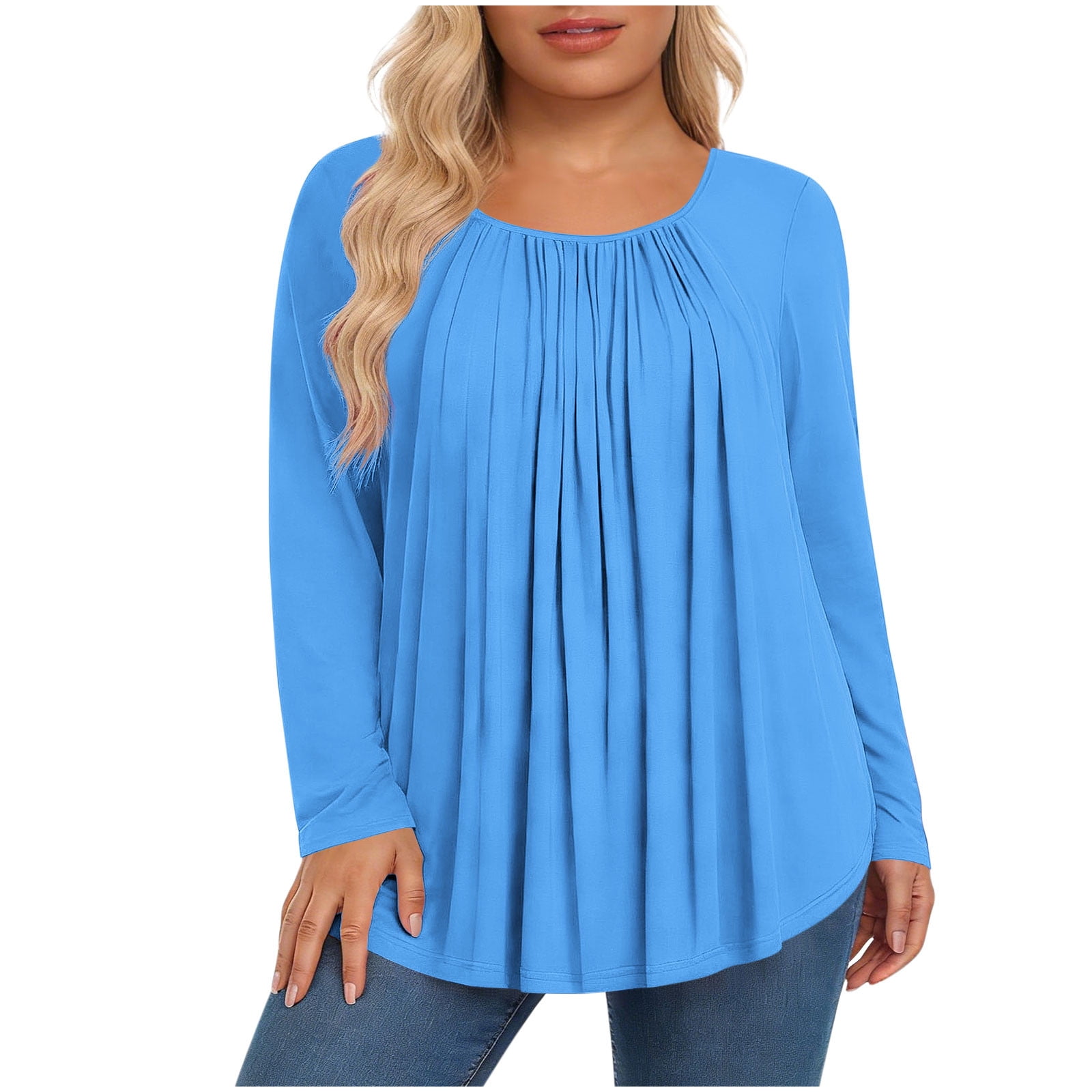 2026 Womens Casual Spring Tops Plus Size Long Sleeve Blouse Solid Color ...
