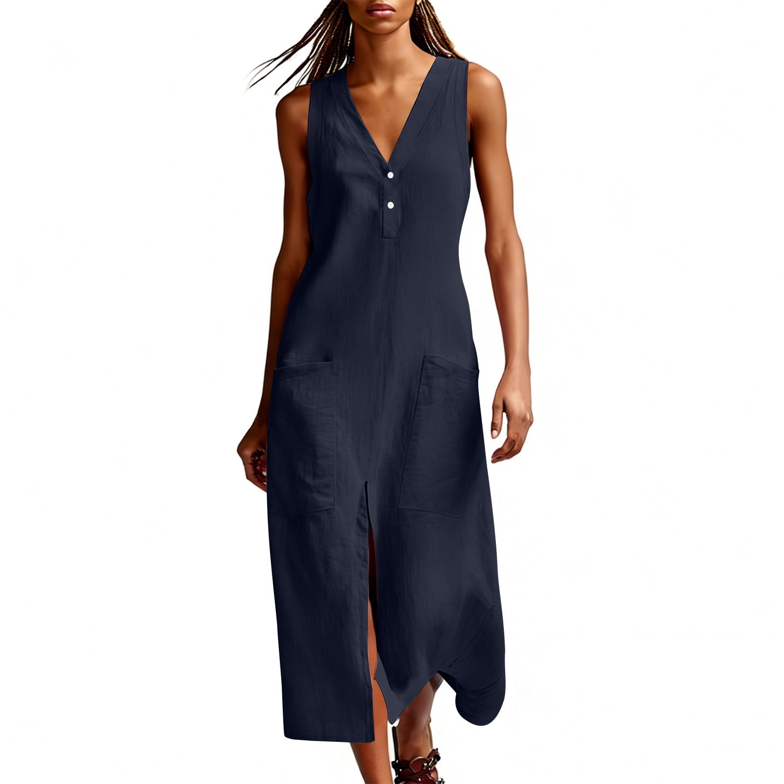 Ahabrexf Sleeveless Dress for Women, V Neck Solid Color Casual Dress ...